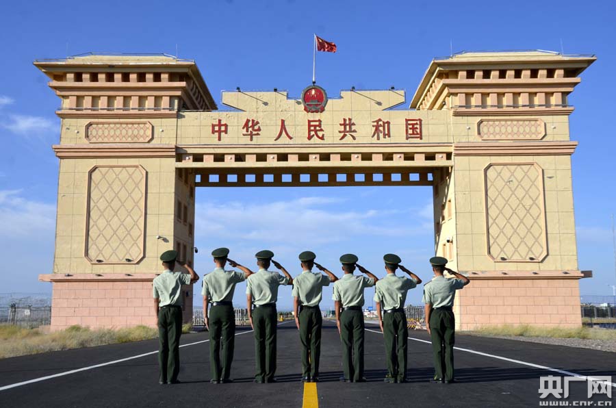 都拉塔邊檢站退伍老兵向國門敬禮告別(董紅太攝)