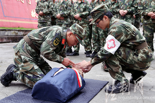 圖為官兵實操學習心肺復蘇