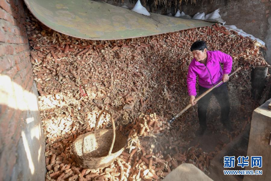 2月9日,在吉林省長春市農安縣楊樹林鄉牛尾巴山村,付寶印的母親鐘士輝準備燒火用的玉米棒。新華社記者 張楠 攝