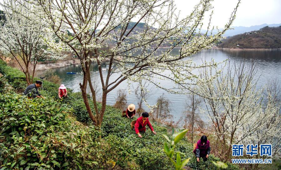 3月4日,安康市漢濱區(qū)流水鎮(zhèn)群眾在漢江之濱采摘新茶。