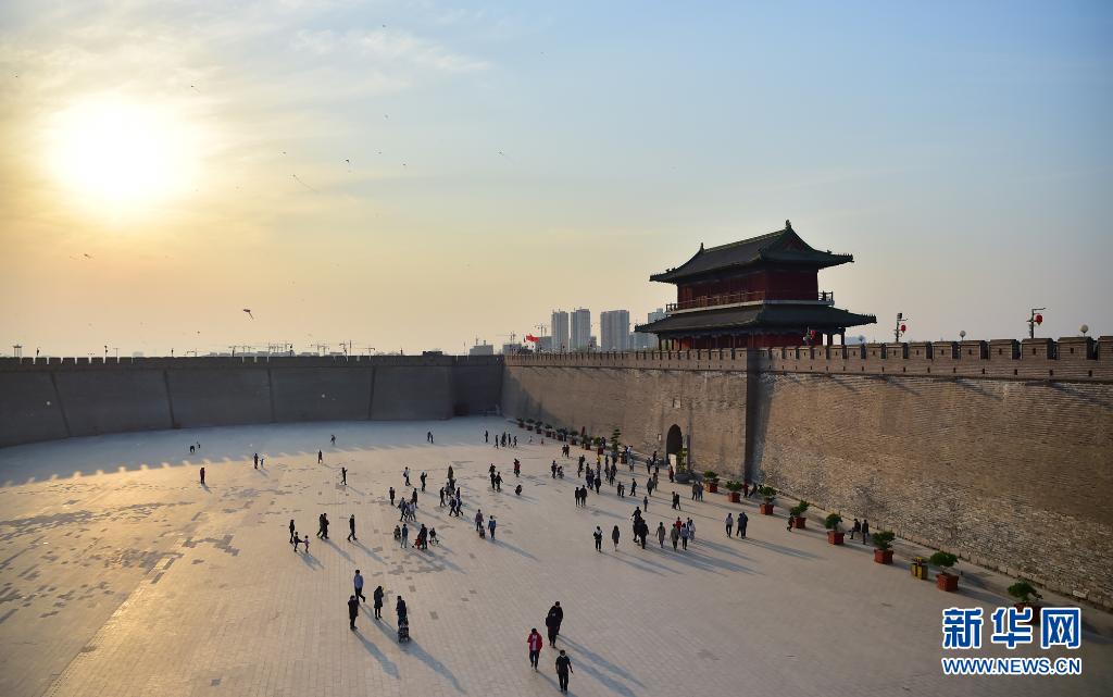 4月4日,游客在石家莊市古城正定南城門(mén)景點(diǎn)游玩。
