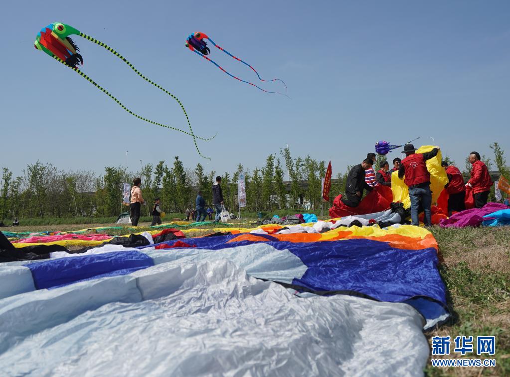 4月10日,人們在第二屆金陵風箏會上放風箏。當日,第二屆金陵風箏會在江蘇省南京市浦口區永寧街道舉行。人們放飛風箏,歡度快樂時光。新華社記者 季春鵬 攝