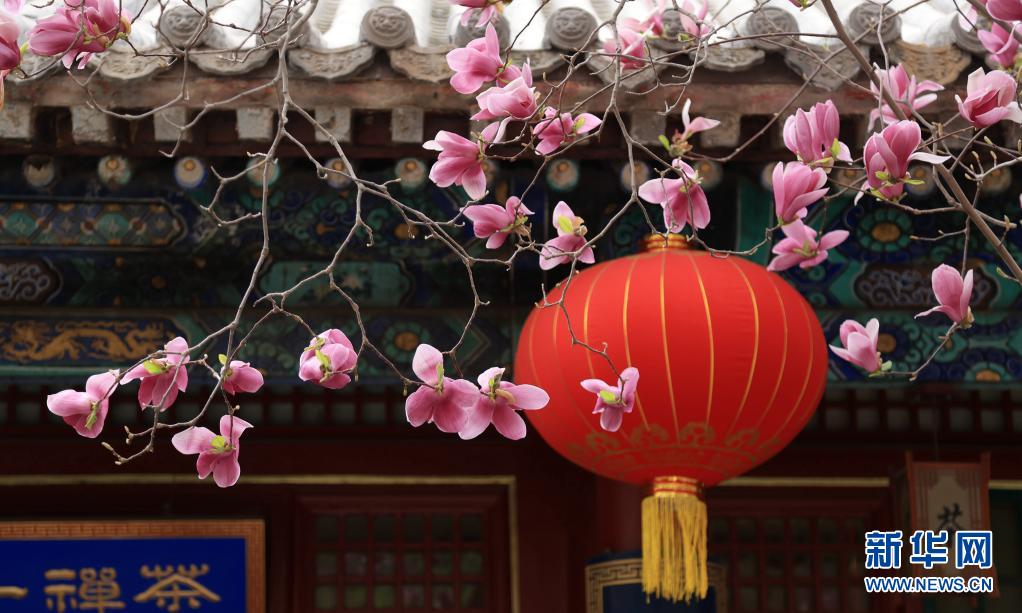 4月10日在北京潭柘寺拍攝的盛開的玉蘭花。新華社發(李學忠 攝)