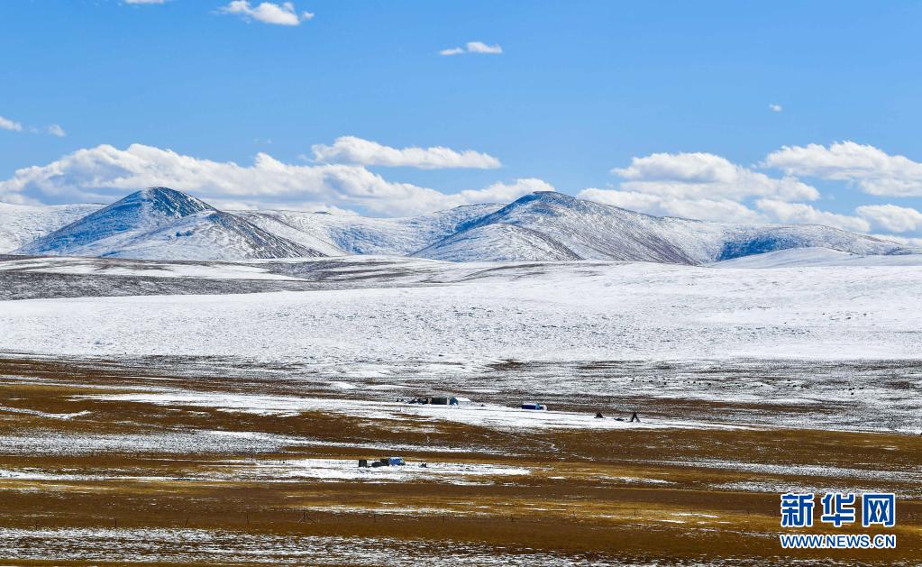 這是在青海省玉樹藏族自治州稱多縣拍攝的雪后牧場(2020年10月29日攝)。