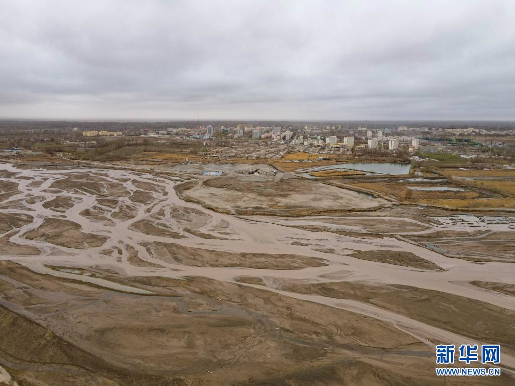 車爾臣河隔開了塔克拉瑪干沙漠與新疆且末縣城(3月31日攝 ,無人機照片)。新華社記者 高晗 攝