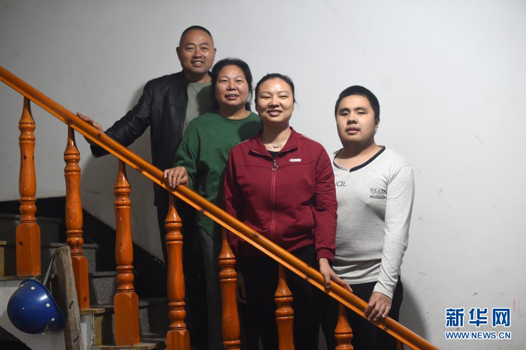 葉景芬和父母、弟弟在家中合影(4月28日攝)。她的弟弟也是一位盲人。新華社記者 韓傳號(hào) 攝