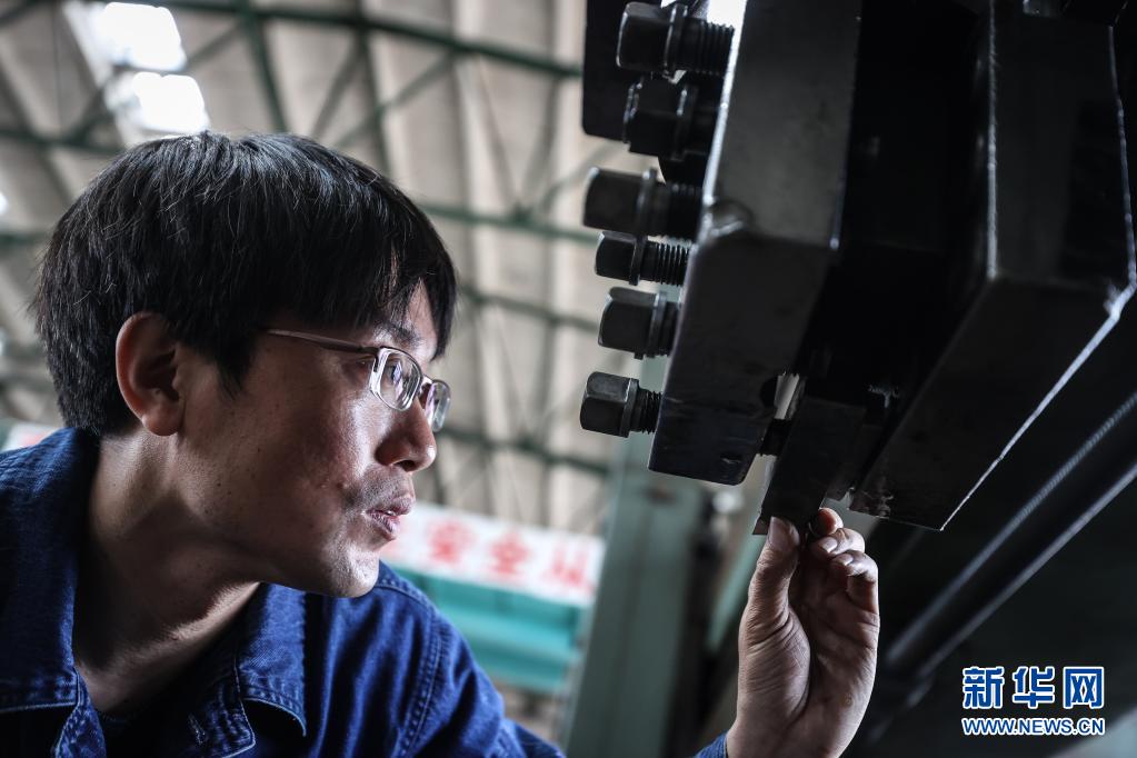 4月30日,王尚典對機床進行調整準備加工配件。