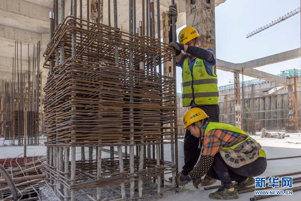 5月1日,中鐵建工集團上海九星城項目的工人在工地施工。