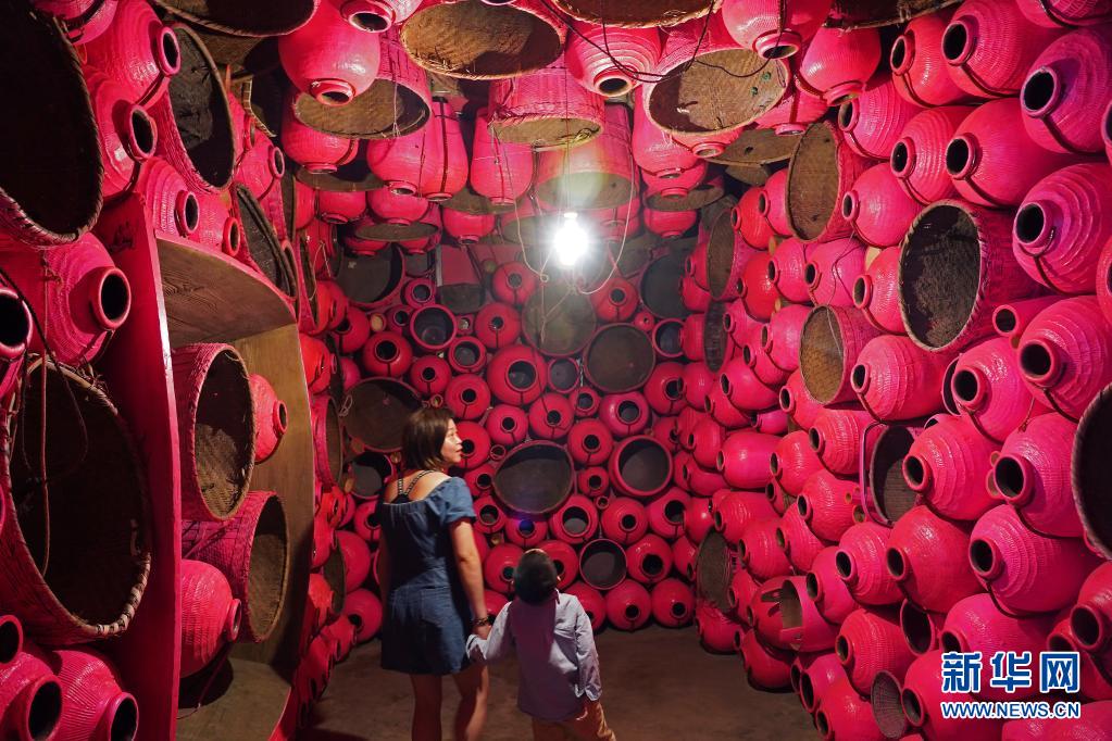 5月1日,參觀者在浮梁縣寒溪村參觀藝術作品《記憶的容器》。