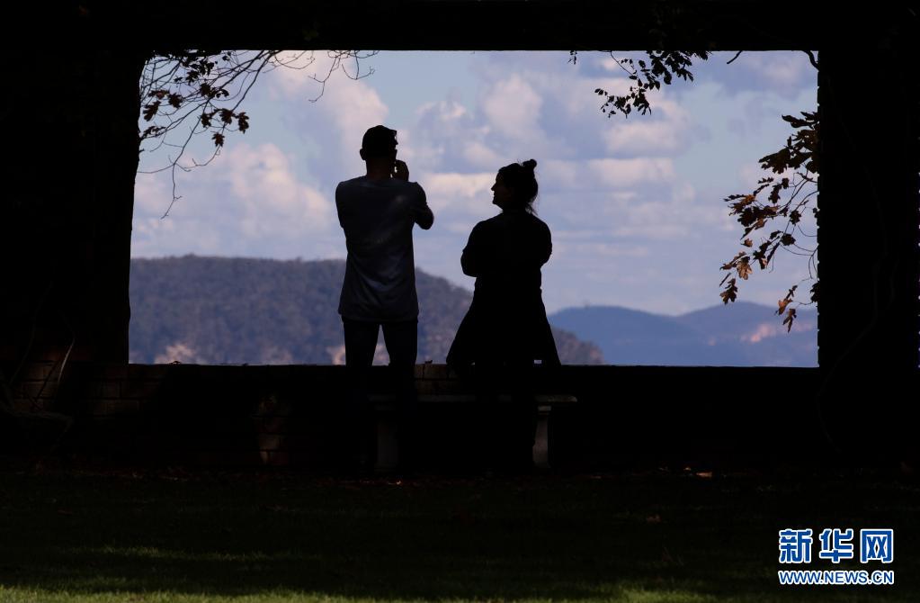 5月3日,兩位游客在澳大利亞悉尼西部藍山地區的一個觀景臺駐足。