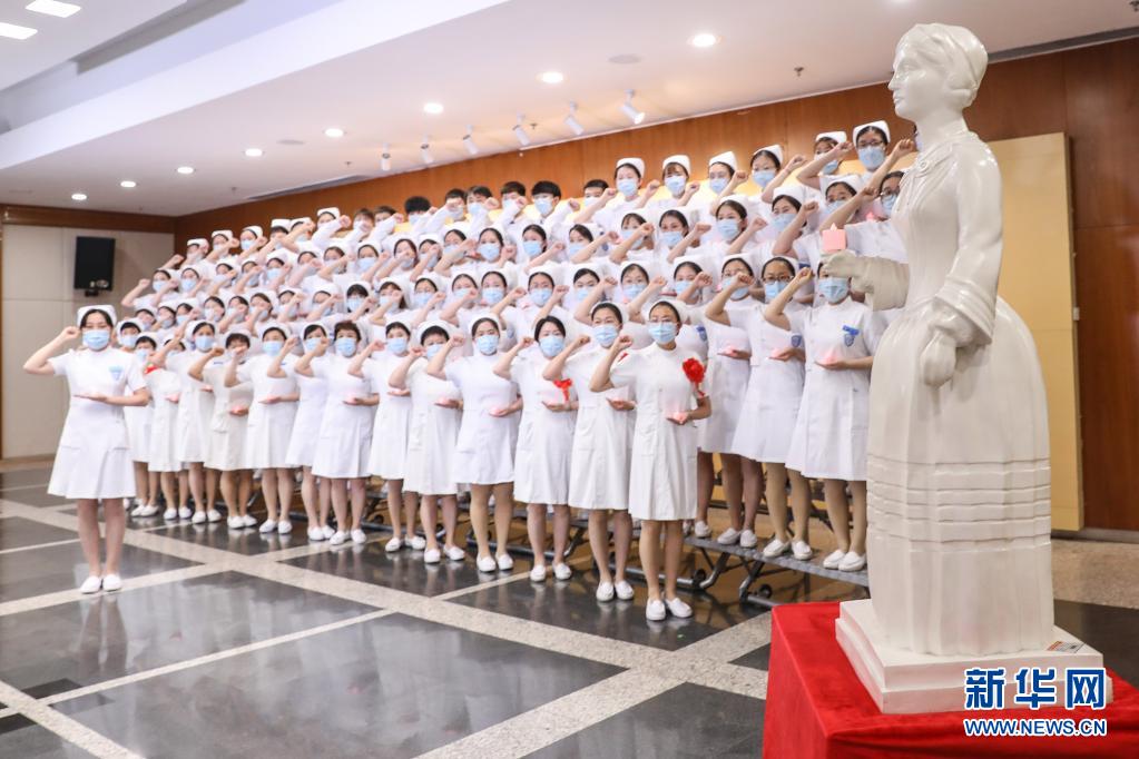 5月10日,北京大學人民醫院的新入職護士一同重溫南丁格爾誓言。