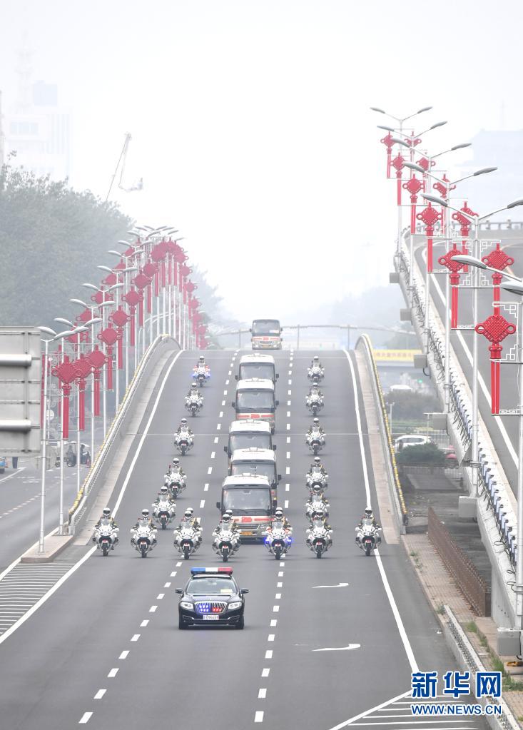 6月29日,慶祝中國共產黨成立100周年“七一勛章”頒授儀式在北京人民大會堂金色大廳隆重舉行。這是“七一勛章”獲得者集體乘坐禮賓車,由國賓護衛隊護衛前往人民大會堂。新華社記者 翟健嵐 攝