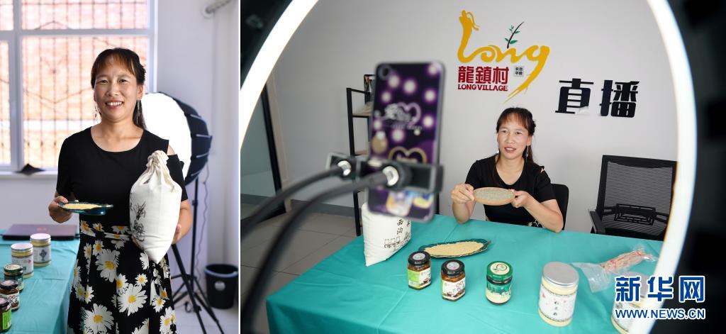 拼版照片:左圖為宋俊麗在山西省平順縣龍鎮(zhèn)村電商服務(wù)中心直播間里;右圖為宋俊麗通過網(wǎng)絡(luò)直播介紹農(nóng)產(chǎn)品(7月8日攝)。2018年,時(shí)年29歲的宋俊麗參加了縣里組織的電商培訓(xùn),在電商導(dǎo)師的鼓勵(lì)下,她嘗試了首次直播,當(dāng)時(shí)直播間里只有幾名觀眾。在自己的堅(jiān)持和電商導(dǎo)師的幫助下,如今她已收獲了不少粉絲,每次上線直播,粉絲們都會(huì)讓她推薦當(dāng)?shù)氐奶厣r(nóng)產(chǎn)品。