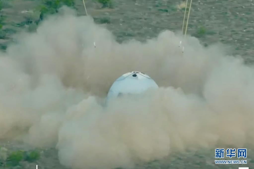 這張美國(guó)藍(lán)色起源公司7月20日發(fā)布的視頻截圖顯示“新謝潑德”飛行器在美國(guó)得克薩斯州西部著陸。
