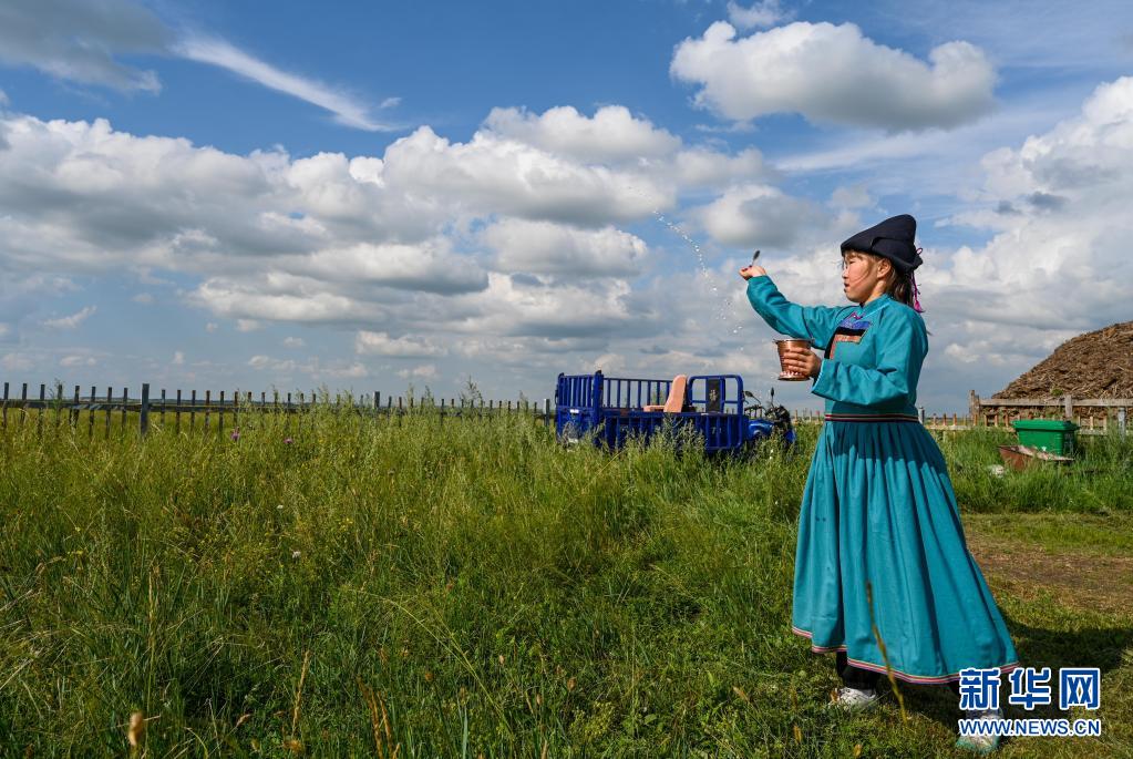 7月26日,吉布斯樂瑪在祭祀,祝愿正在參加第十四屆全運(yùn)會群眾組足球比賽的錫尼河隊取得勝利。