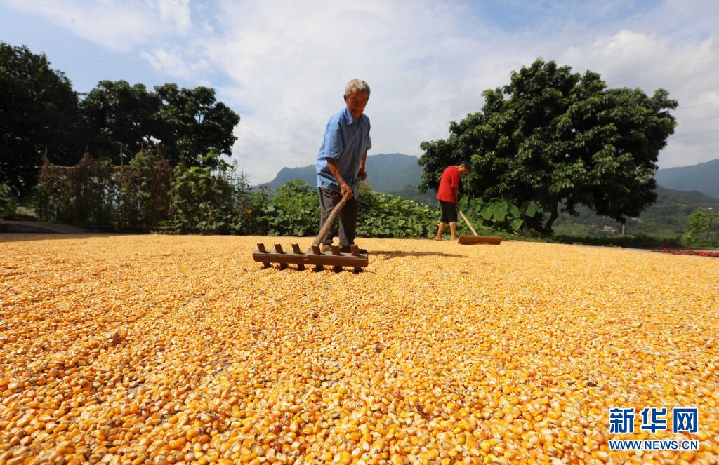 8月17日,赤水市長期鎮(zhèn)華陽村的村民在晾曬玉米。