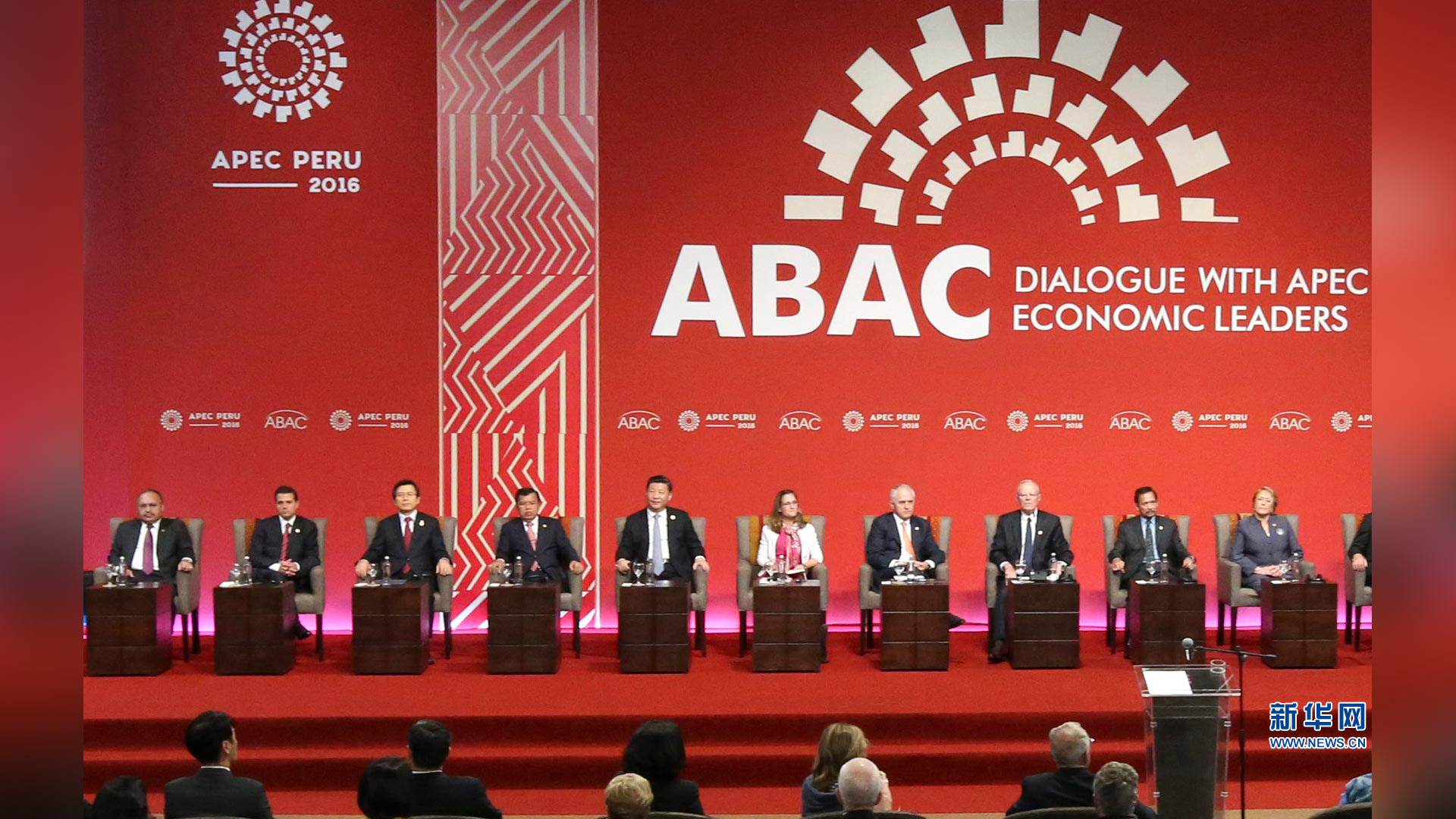 11月19日,2016年亞太經合組織工商領導人峰會在秘魯利馬舉行。國家主席習近平應邀出席并發表題為《深化伙伴關系 增強發展動力》的主旨演講。 新華社記者 蘭紅光 攝2016-11-20