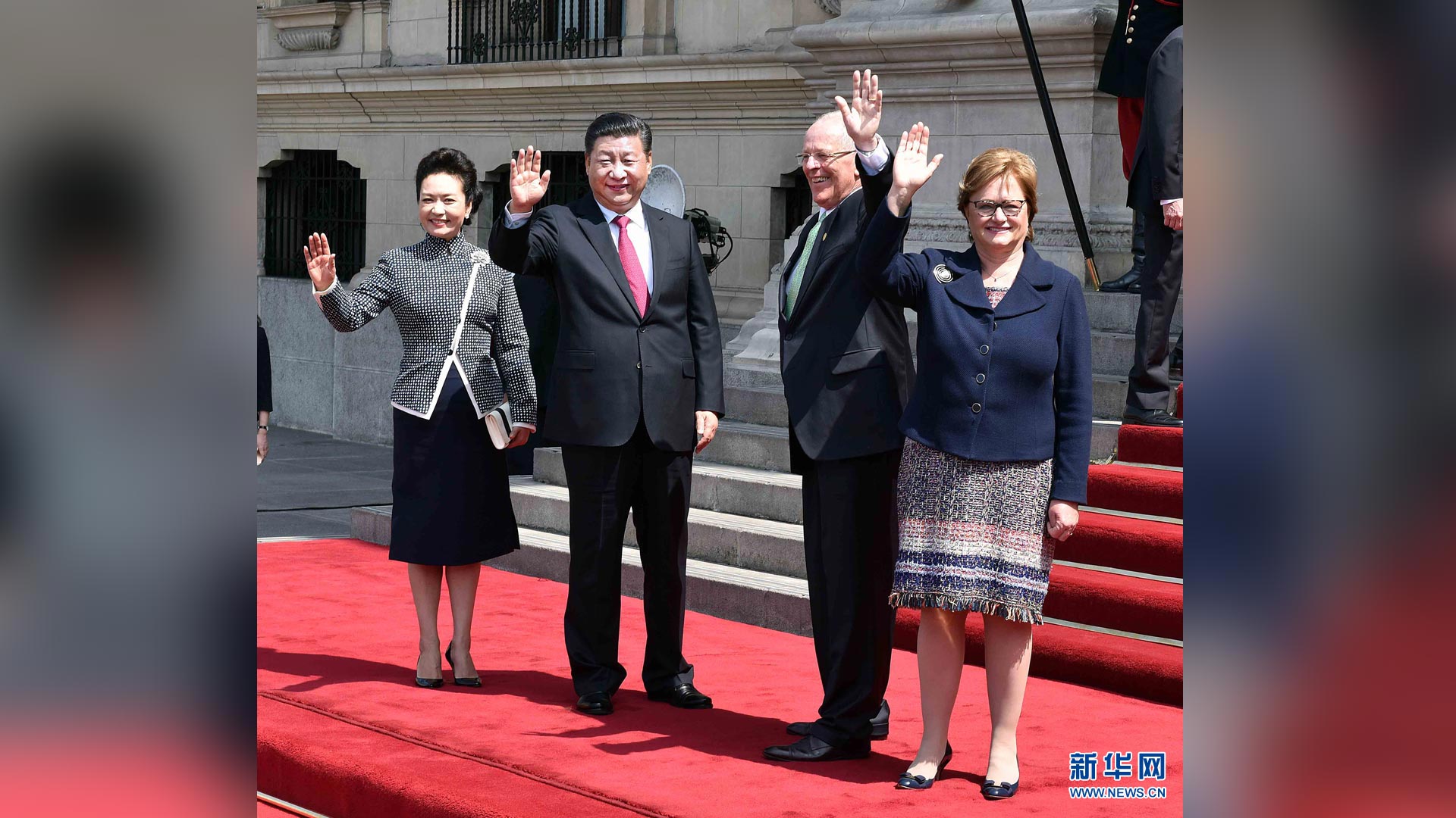 當地時間11月18日,國家主席習近平抵達利馬,出席亞太經合組織第二十四次領導人非正式會議并對秘魯共和國進行國事訪問。習近平和夫人彭麗媛受到秘魯副總統阿勞斯等熱情迎接。新華社記者 丁林 攝2016-11-20