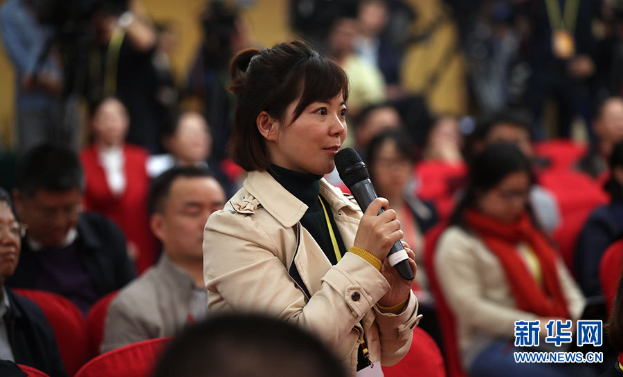 ??? 10月20日,十九大新聞中心舉辦集體采訪活動,主題為“實施創新驅動發展戰略”。圖為科技日報中國科技網記者提問。新華網 郝廣鵬攝