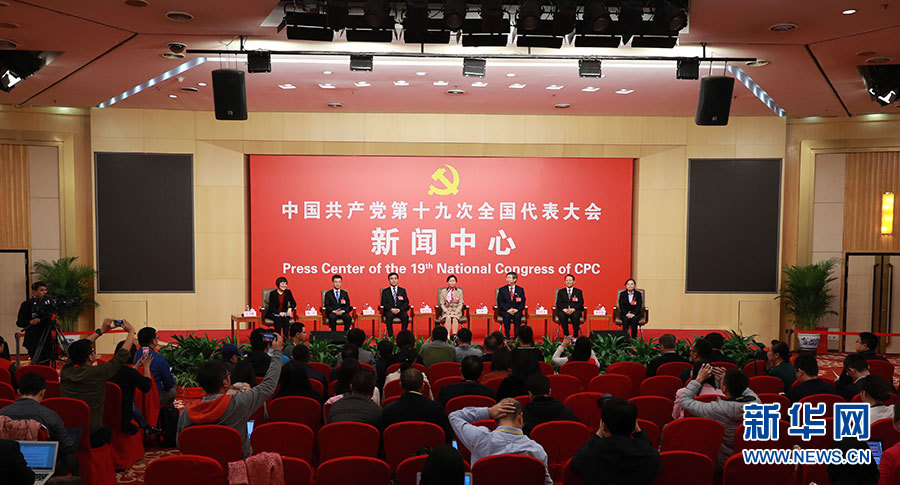 10月22日,十九大新聞中心在梅地亞中心二層新聞發布廳舉辦集體采訪活動,邀請教育領域代表談“教育綜合改革”。圖為集體采訪活動現場。新華網 郝廣鵬攝