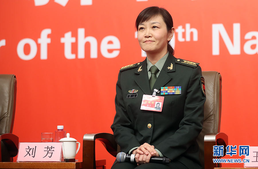 10月22日,十九大新聞中心在梅地亞中心二層新聞發布廳舉辦集體采訪活動,主題為“中國特色強軍之路邁出堅定步伐”。圖為軍委國際軍事合作辦公室參謀劉芳。新華網 郝廣鵬攝