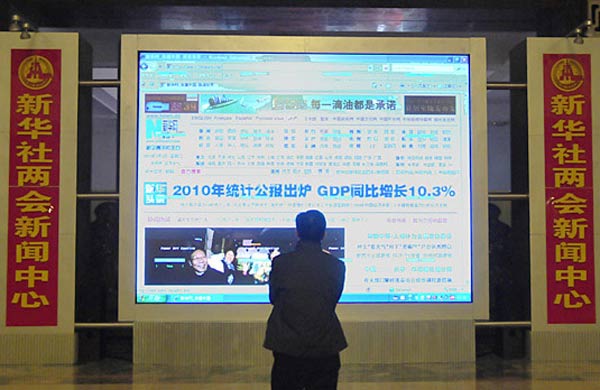 3月1日,新華網兩會報道人員正在布置工作間。第十一屆全國人民代表大會第四次會議、全國政協十一屆四次會議即將開幕。