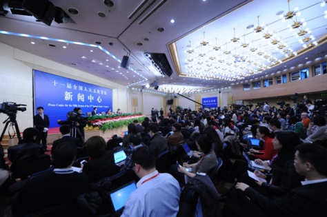 十一屆全國人大五次會議新聞中心于2012年,3月5日(星期一)下午15:00在梅地亞中心多功能廳舉行記者會。 國家發展和改革委員會主任張平將就“經濟形勢與宏觀調控”的相關問題回答中外記者的提問。