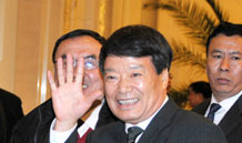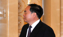 國土資源部部長徐紹史進入會場時向本網記者招手