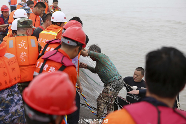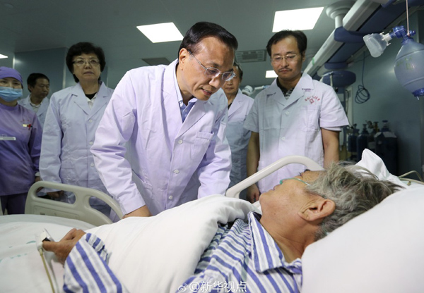 新華網北京6月2日電 ?據新華社“新華視點”微博報道,“我看著你被救上來的!”2日下午,李克強來到監利縣人民醫院,看望中午獲救的朱紅美。這位65歲的老人被潛水員救起時,總理正在沉船附近水域的船上現場指揮。朱紅美講起自己逃生經歷,總理說:“不要多說話,先把身體養好。政府會處理好你們善后事宜的。”