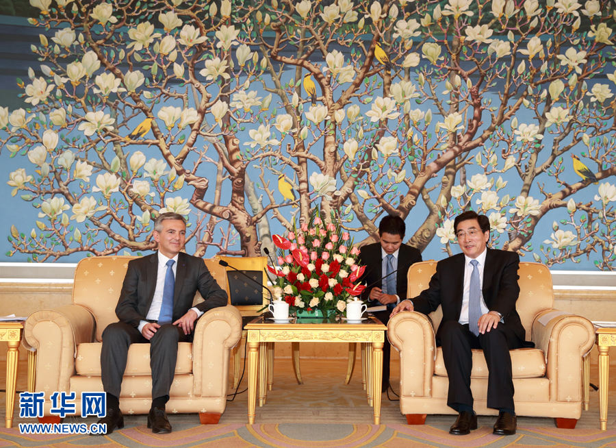 ??? 7月14日,中共中央政治局委員、北京市委書記郭金龍在北京會見馬耳他國民黨領(lǐng)袖布蘇蒂爾。 新華社記者 丁海濤 攝