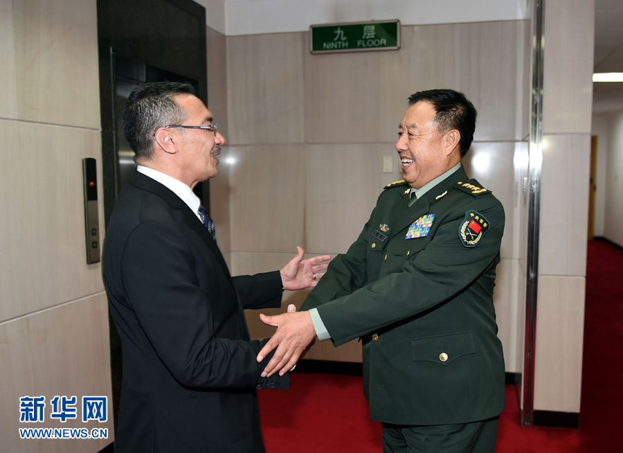 ??? 10月15日,中共中央軍委副主席范長龍在北京八一大樓會見來華出席中國-東盟國防部長非正式會晤及香山論壇的馬來西亞國防部長希沙姆丁。新華社記者張領攝