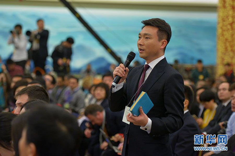????3月15日,國務院總理李克強在人民大會堂三樓金色大廳會見采訪十二屆全國人大三次會議的中外記者并回答記者提出的問題。圖為中央電視臺記者提問。新華網/中國政府網?郭小天 攝