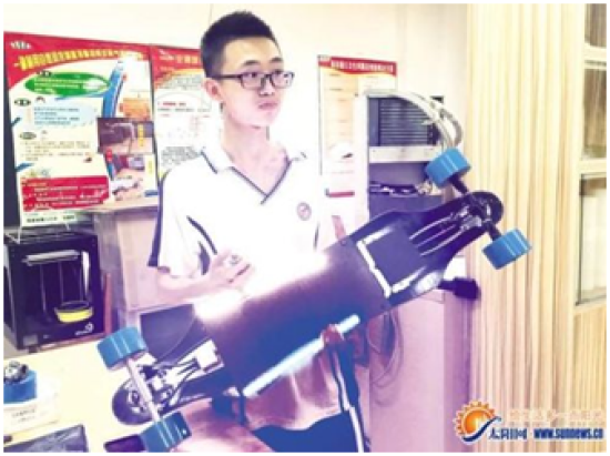 當地時間5月8日至15日,在美國鳳凰城舉辦的第67屆國際青少年Intel科學與工程大獎賽(ISEF)上,來自全球75個國家和地區的1750名學生參賽。其中,中國廈門第六中學的蔡煒楨、顏明等研發的“帶碟剎藍牙無線遙控電驅動滑板”榮獲三等獎,創造了中國大陸代表隊在國際青少年科技競賽“世界杯”上的最好成績。