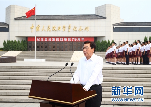 7月7日,紀念全民族抗戰爆發79周年儀式在北京中國人民抗日戰爭紀念館舉行。中共中央政治局委員、北京市委書記郭金龍主持紀念儀式。新華社記者丁海濤攝