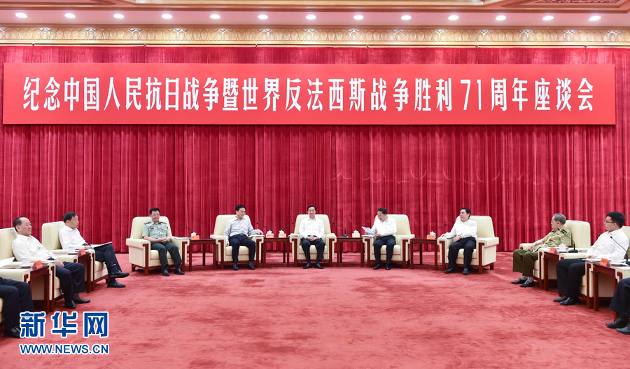 ?? 9月2日,紀(jì)念中國(guó)人民抗日戰(zhàn)爭(zhēng)暨世界反法西斯戰(zhàn)爭(zhēng)勝利71周年座談會(huì)在北京舉行,中共中央政治局委員、中央書記處書記、中宣部部長(zhǎng)劉奇葆出席。新華社記者高潔攝
