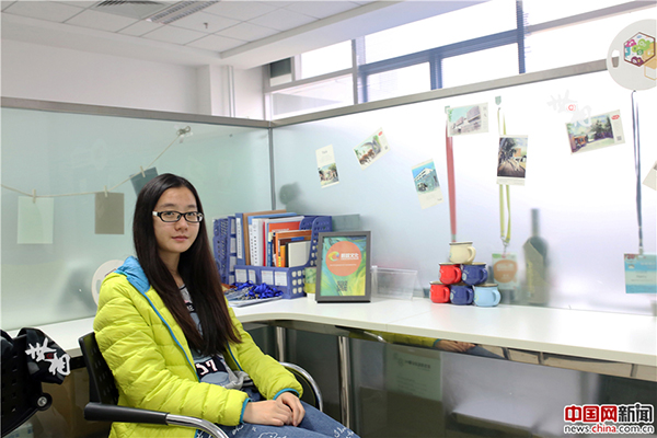 蜂巢創(chuàng)意空間的創(chuàng)業(yè)團(tuán)隊(duì)在討論方案,墻面上貼滿(mǎn)了全世界有名的企業(yè)。