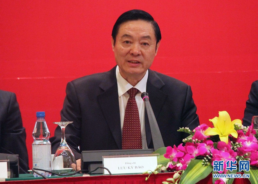 12月23日,在越南首都河內,中共中央政治局委員、中央書記處書記、中宣部部長劉奇葆在第十二次中越兩黨理論研討會開幕式上作主旨報告。  新華社記者樂艷娜攝