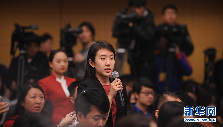 ?????十二屆全國人大四次會議新聞中心于3月12日(星期六)14時30分在梅地亞中心多功能廳舉行記者會,邀請國務院國有資產監督管理委員會主任肖亞慶、副主任張喜武、副主任黃丹華和副秘書長、新聞發言人彭華崗就“國企改革”的相關問題回答中外記者的提問。圖為新華社記者提問。新華網/中國政府網 陳杰 攝