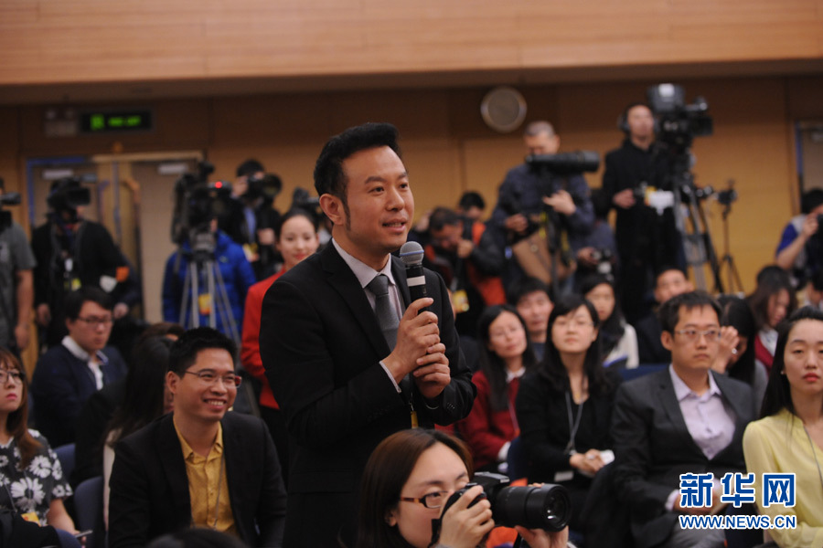 十二屆全國人大四次會議新聞中心于3月14日(星期一)10時在梅地亞中心多功能廳舉行記者會,邀請交通運輸部部長楊傳堂、交通運輸部運輸服務司司長劉小明、北京交通發展研究中心主任郭繼孚就“深化出租汽車改革與發展”的相關問題回答中外記者的提問。圖為中央電視臺、央視網、央視新聞客戶端記者提問。新華網/中國政府網 陳杰 攝