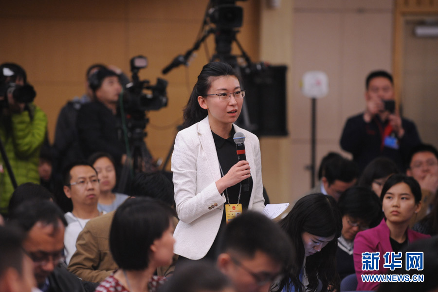 十二屆全國人大四次會議新聞中心于3月14日(星期一)10時在梅地亞中心多功能廳舉行記者會,邀請交通運輸部部長楊傳堂、交通運輸部運輸服務(wù)司司長劉小明、北京交通發(fā)展研究中心主任郭繼孚就“深化出租汽車改革與發(fā)展”的相關(guān)問題回答中外記者的提問。圖為中國教育電視臺、中國教育網(wǎng)絡(luò)電視臺記者提問。新華網(wǎng)/中國政府網(wǎng) 陳杰 攝