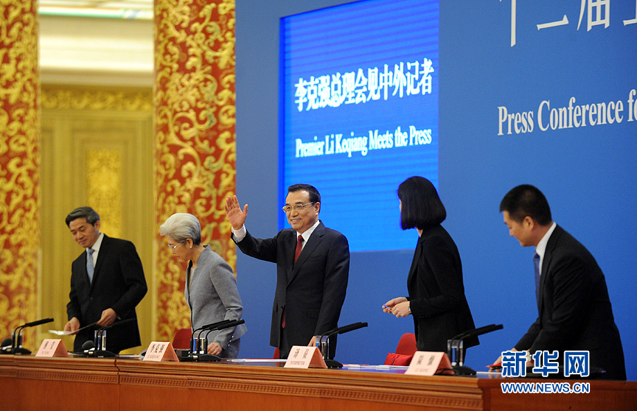 步入會場后 李克強總理與記者打招呼