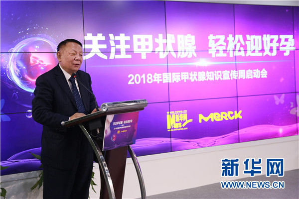 5月23日,2018 年第十屆國際甲狀腺知識宣傳周啟動會在新華網舉辦,中華醫(yī)學會內分泌學分會前主任委員滕衛(wèi)平現(xiàn)場致辭。新華網 楊锘攝
