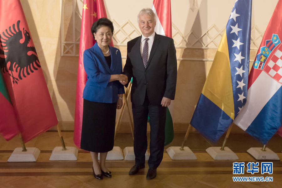 6月19日,在匈牙利布達佩斯,中國國務院副總理劉延東(左)會見匈牙利副總理謝姆延。   新華社發(弗爾季·奧蒂洛攝)