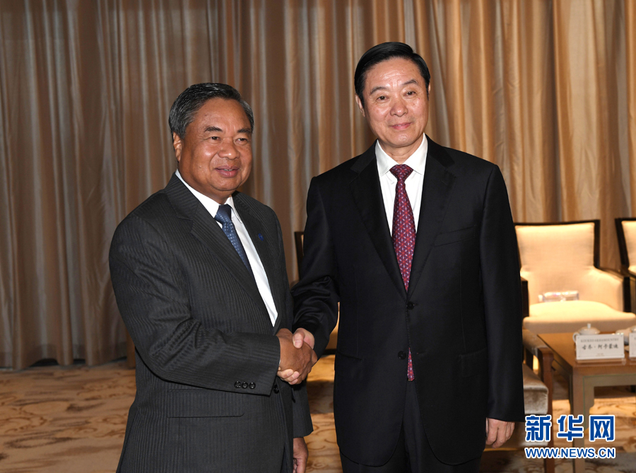 6月22日,第六次中老兩黨理論研討會在海南博鰲開幕。中共中央政治局委員、中央書記處書記、中宣部部長劉奇葆和老撾人革黨中央政治局委員、中央書記處書記、中組部部長占西,老撾人革黨中央書記處書記、中宣部部長吉喬出席開幕式。這是研討會前,劉奇葆同占西舉行會談。新華社記者 趙穎全 攝