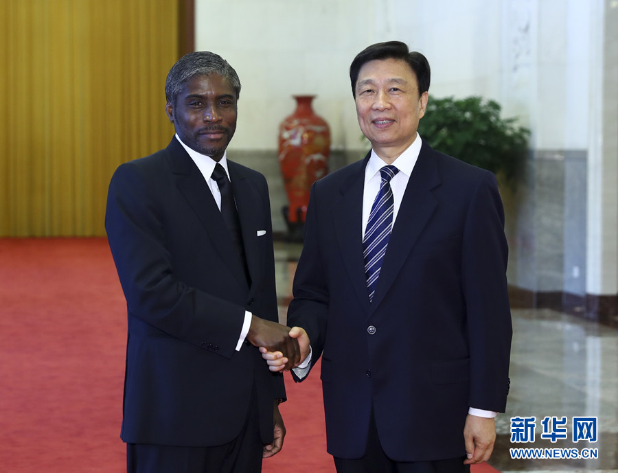 7月13日,中國國家副主席李源潮在北京人民大會(huì)堂與赤道幾內(nèi)亞副總統(tǒng)曼格會(huì)談。 新華社記者 謝環(huán)馳 攝