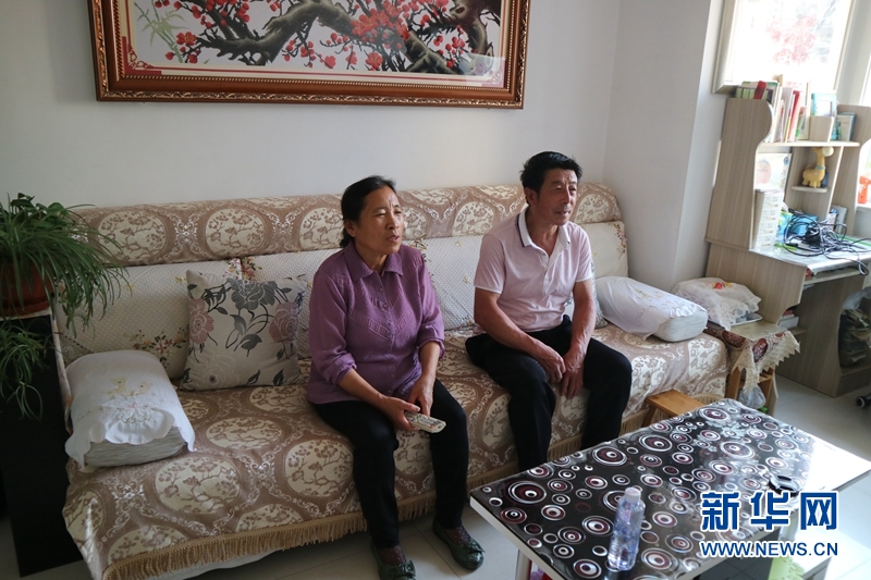 6月29日,高俊平和妻子在新家中看電視。新華網發 (趙冰攝)