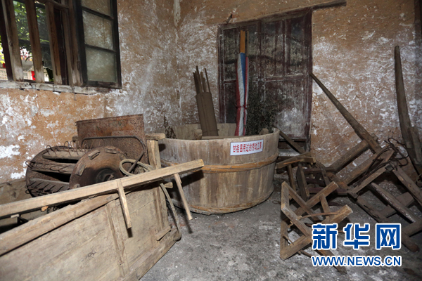 江西蓮花縣沿背村甘祖昌將軍故居中擺放著他曾經使用過的勞動工具(3月29日攝)。新華社發
