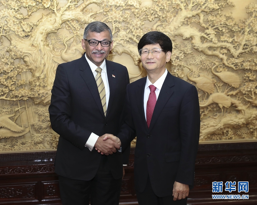 8月22日,中共中央政治局委員、中央政法委書記孟建柱在北京會見新加坡首席大法官梅達順。 新華社記者 龐興雷 攝