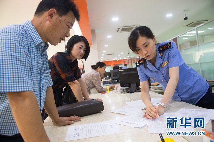 2017年8月17日,在浙江省寧波市奉化區(qū)行政服務(wù)中心,奉化一家公司在商事登記窗口辦理公司注冊(cè)手續(xù)。目前全國(guó)所有省市縣三級(jí)政府部門權(quán)責(zé)清單均已公布,明確政府機(jī)構(gòu)、職能、權(quán)限、程序,厘清權(quán)力邊界。新華社記者 翁忻旸 攝