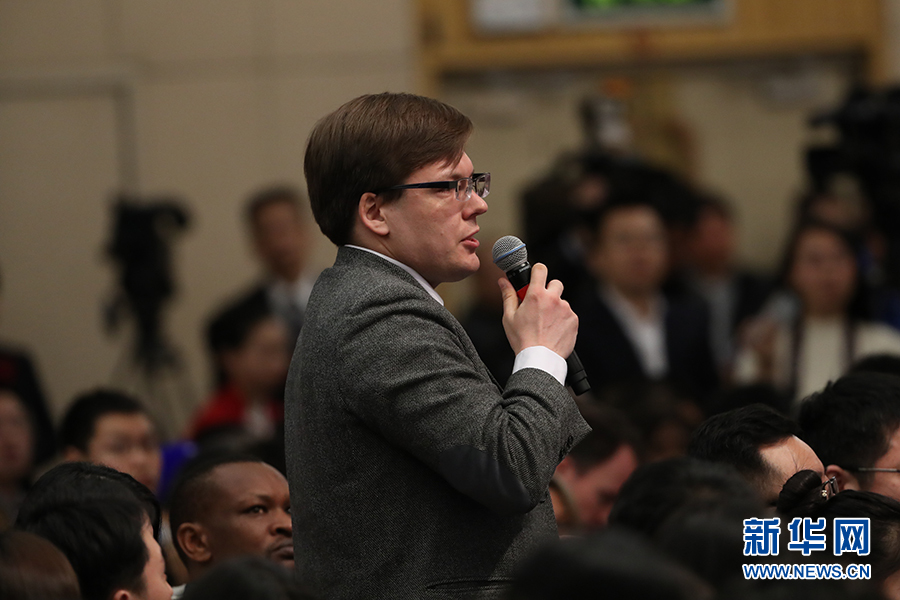 十二屆全國人大五次會議新聞中心于3月8日(星期三)10時在梅地亞中心多功能廳舉行記者會,邀請外交部部長王毅就“中國的外交政策和對外關系”的相關問題回答中外記者的提問。圖為塔斯社記者提問。新華網(wǎng)/中國政府網(wǎng)?翟子赫 攝?